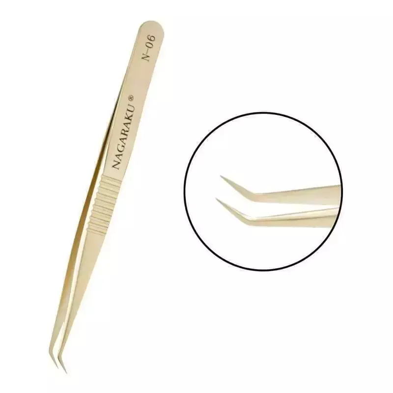 Fabricada em aço inoxidável antimagnético, a pinça N-06 é resistente à corrosão e ao desgaste, podendo ser esterilizada sem perder seu fio. Com acabamento dourado sofisticado, é um item que combina funcionalidade com elegância na bancada de qualquer lash designer.